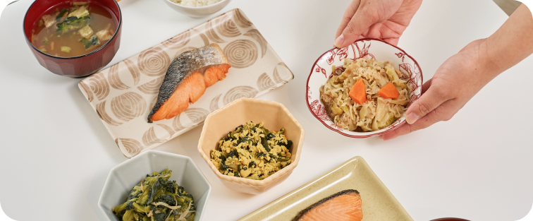 お惣菜へのこだわりメニューは、社内の管理栄養士が開発しており、栄養計算や自社で定めた厳しい品質基準をクリアしているため、品質には自信があります。